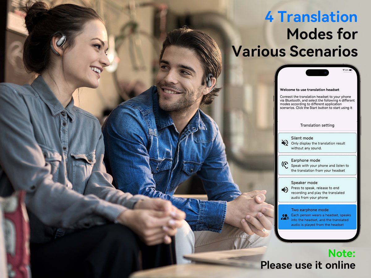 Auriculares inalámbricos que proporcionan traducción bidireccional en tiempo real con una precisión de hasta el 97% en 140 idiomas.