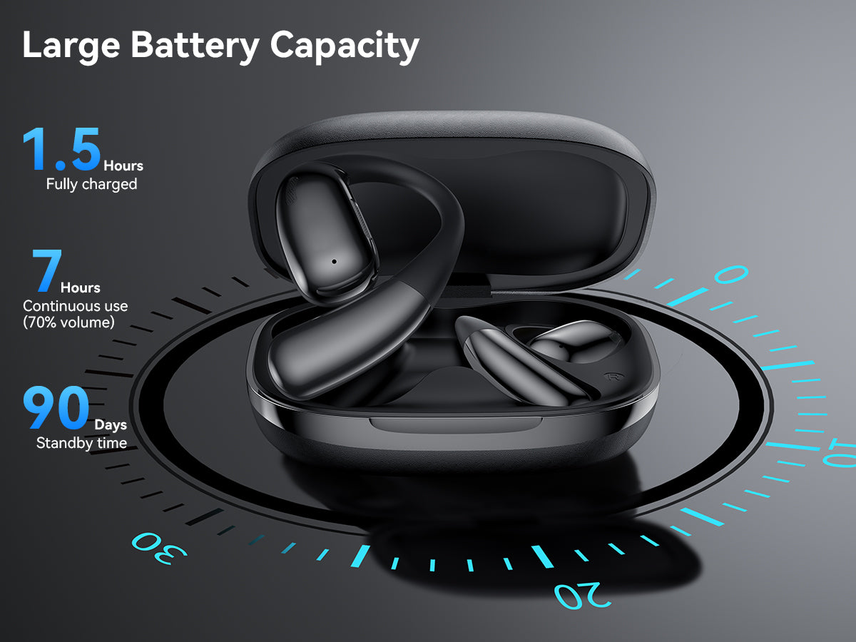 Auriculares Bluetooth V5.4 OWS (oído abierto) XO G37 con función traducción AI COOL 140 idiomas, estuche de carga, color negro/gris.