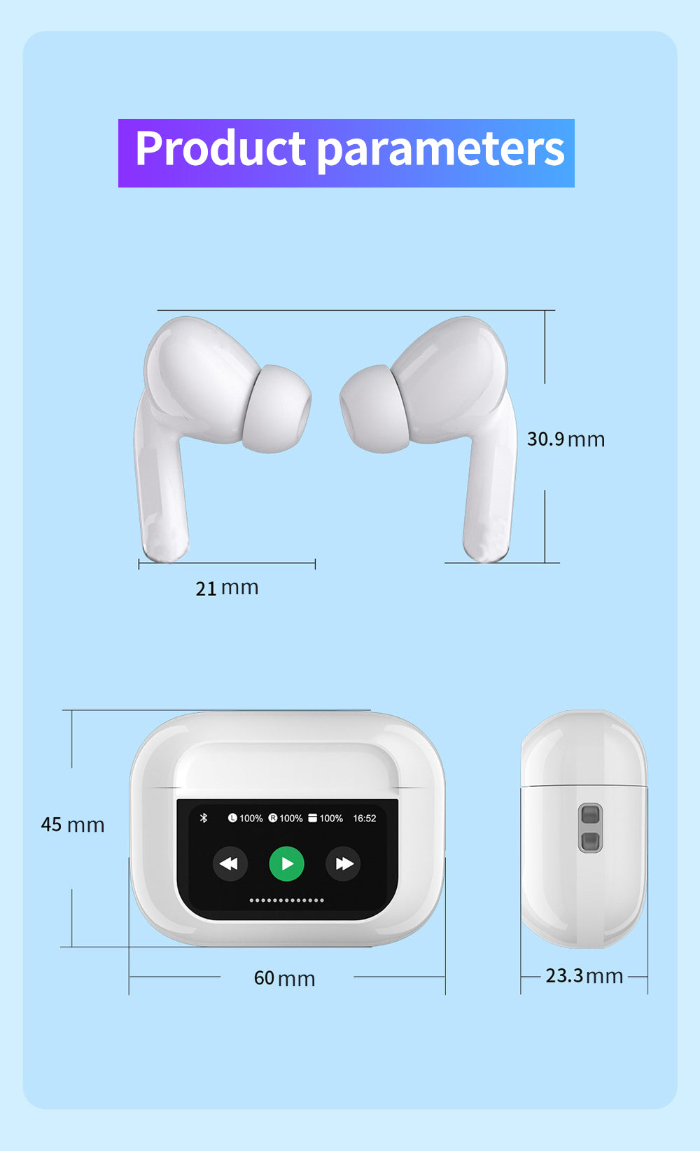 Bluetooth estéreo, llamada de Bluetooth, indicador de batería, ENC, ANC, calificación impermeable/a prueba de polvo, pantalla de pantalla de color